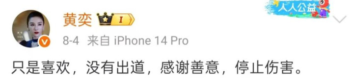 因为网友们的抵制太过强烈,所以黄奕很快发文称“只是喜欢,没有出道,感谢善意,停止伤害。”