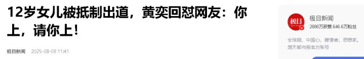极目新闻——12岁女儿被抵制出道,黄奕回怼网友:你上,请你上!2025-08-09